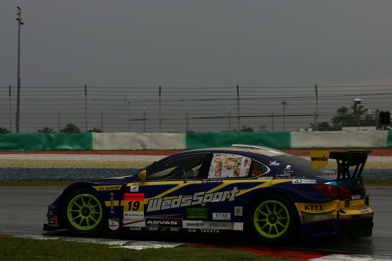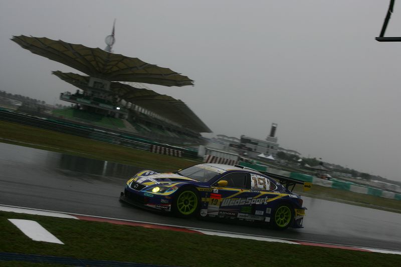 ウェットのセッティングを調整しながら7LAP目に2分30秒381を記録し、3番手となる。トップは大雨になる前のハーフウエット路面でたたき出した2分25秒091で69号車マレーシアのチームだ。しかし、19号車ウェッズスポーツIS350は日本チームでウェット路面では実質トップとなる。