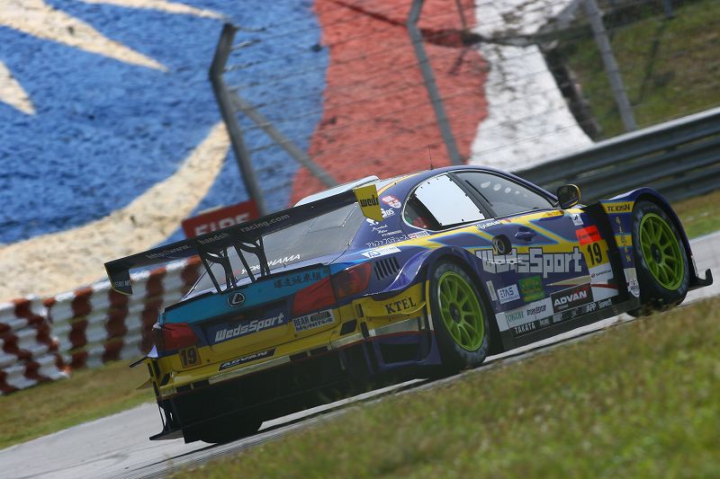 朝は気温も高く晴れていたが、フリー走行開始直前に大雨となった。この間は走る車も無く、各チーム小降りになるのを待っての走行となる。スタートドライバーは片岡選手。ドライタイヤでスタートするも、すぐに大雨となり、ピットに戻ってきた。昨年は予選2位、決勝はリタイヤと19号車ウェッズスポーツIS350にとってデータの無いサーキットとなる。しかし、鈴鹿のテストで良い方向のセットとタイヤを確認している為、天候以外は不安の無いスタートとなった。